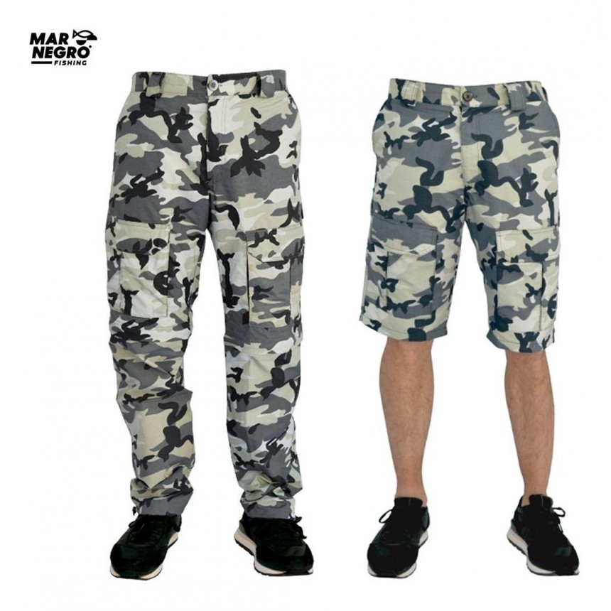 Calça de Pesca Mar Negro vira Bermuda Camuflado Cinza