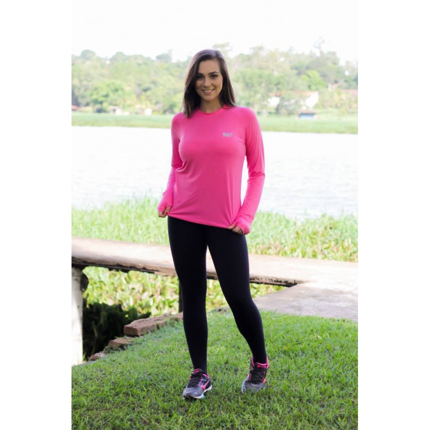Camiseta feminina manga longa com opcional de Luvinha no punho ( para proteção da mão contra o sol )